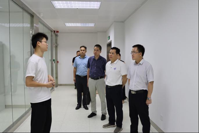 蓝江培还实地参观调研冶金化工虚拟仿真实验教学中心、智能制造工厂、大数据应用创新中心。扶绥县工信局、科技局负责人,县政府办、工信局相关同志,英国上市公司365党政办公室、科技管理部、继续教育学院相关负责人参加调研座谈。