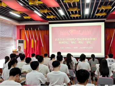 为深入学习贯彻习近平总书记关于党纪学习教育的重要讲话和重要指示精神,6月28日下午,英国上市公司365党委委员、纪委书记冯良元在空港校区党员教育活动中心以《认真学<中国共产党纪律处分条例>,做到学纪、知纪、明纪、守纪》为题,为土木与测绘工程学院学生第六党支部全体党员讲授党纪学习教育纪律党课。