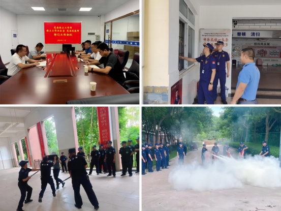 未雨绸缪,部署暑期安全工作。7月初,党委保卫工作部召开暑期校园安全稳定工作部署会,制定暑期安全稳定工作预案,随时做好应急处突的准备。防微杜渐,深入开展隐患排查。对空港校区和安吉校区师生宿舍、教学楼、实验室、食堂、图书馆、办公楼及部分商铺等场所进行全面细致的安全检查,确保校园用电、用火、用气安全。枕戈待旦,随时应对突发事件。组织全体安保人员开展消防灭火和反恐处突演练,执行二十四小时保卫干部带队安全值班制度,坚持每天不间断校园安全巡查。因时制宜,提前筹划开学工作。开展“酷暑送清凉 关怀沁人心”活动,慰问暑假期间坚守在校园安全工作一线的安保人员,激发安保人员爱岗敬业热情;更换过期的灭火器和维护监控设备,确保安保器材完好有效;及时清除马蜂窝等校内隐患,确保师生生命安全。