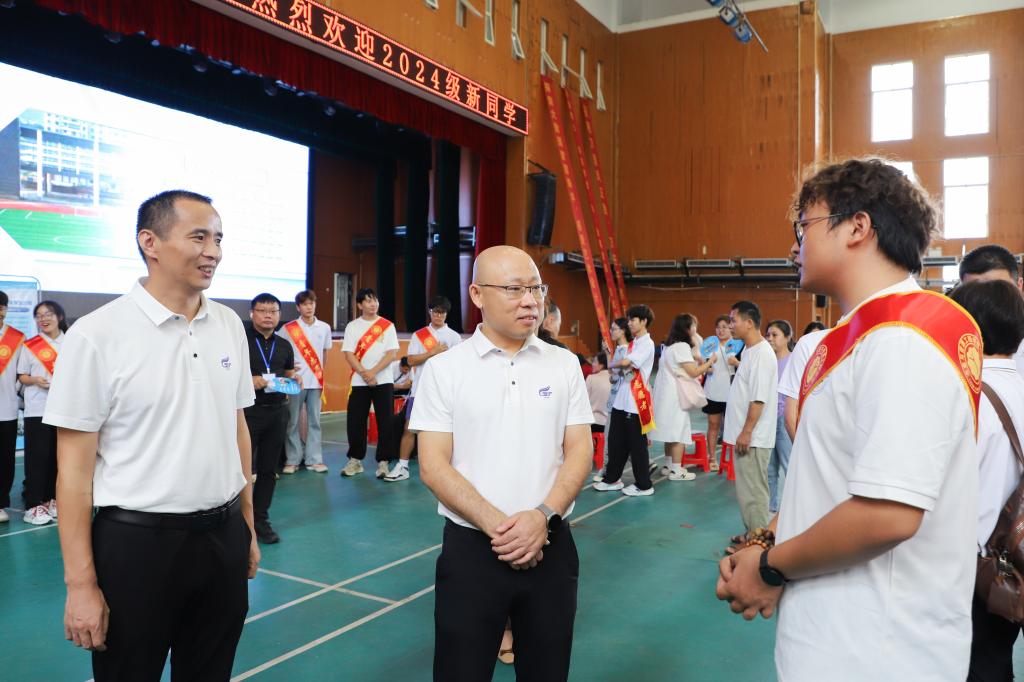 迎新现场,李雨一行逐一走访迎新报到点,详细了解新生报到流程、入学手续、校园交通、后勤保障等情况,对迎新工作重点环节作了指导。亲切慰问迎新工作人员和志愿者,向他们的辛勤付出表示诚挚感谢,鼓励他们继续发扬奉献精神,强化服务意识,用心用情做好迎新工作,为新生顺利开启大学生活提供全方位保障,让新生与家长切实感受到桂工大家庭的温暖。