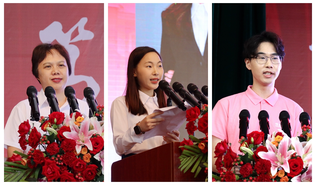 何贵香、张予嘉、陈临羲分别作为教师代表、在校生代表、新生代表发言