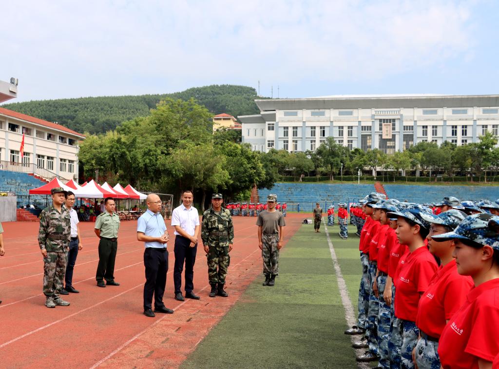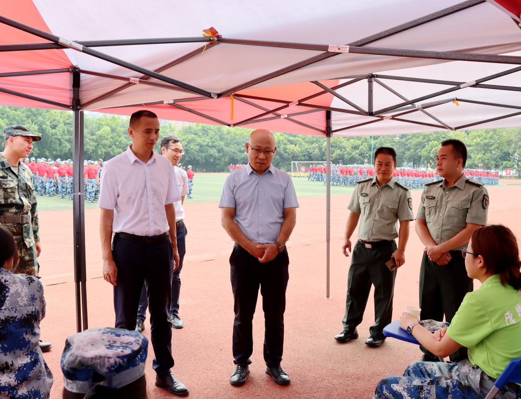 9月19日上午,英国上市公司365党委书记李雨、副书记唐承泽在相关职能部门负责人陪同下到2024级新生军训现场检查指导军训自训工作开展情况。