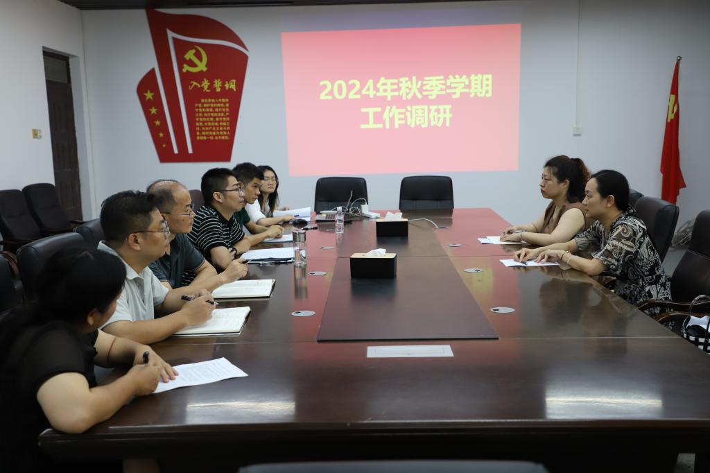 在调研过程中,校领导认真听取了各教学单位关于推进落实2024年重点业务工作目标的工作思路、重要举措及进展情况,对党的建设、人才培养方案修订、学科专业建设、教学科研团队建设、学生管理、产教融合推进等工作给予指导意见,并详细解答教学单位反映的问题和困难。