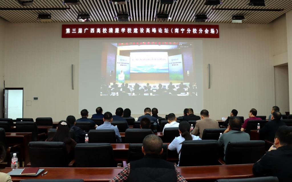 据悉,广西高校清廉学校建设高峰论坛是我校推进“清廉桂工”建设的一种探索与实践,在各兄弟高校的大力支持下,已经成功举办两届。该论坛在区内产生了广泛的社会影响和良好的社会效应,已经成为区内高校交流清廉学校建设理论和实践成果的重要平台。本次论坛的成功举办,对于全面深化清廉学校建设,培育风清气正良好教育生态,赋能教育事业高质量发展具有重要意义。下一步,学校将以高度的政治自觉,持续加强“清廉桂工”建设,深入扎实推进党风廉政建设和反腐败斗争,大力营造风清气正的政治生态和育人环境,推动清廉学校建设提质增效,奋力开创学校各项事业高质量发展新局面。
