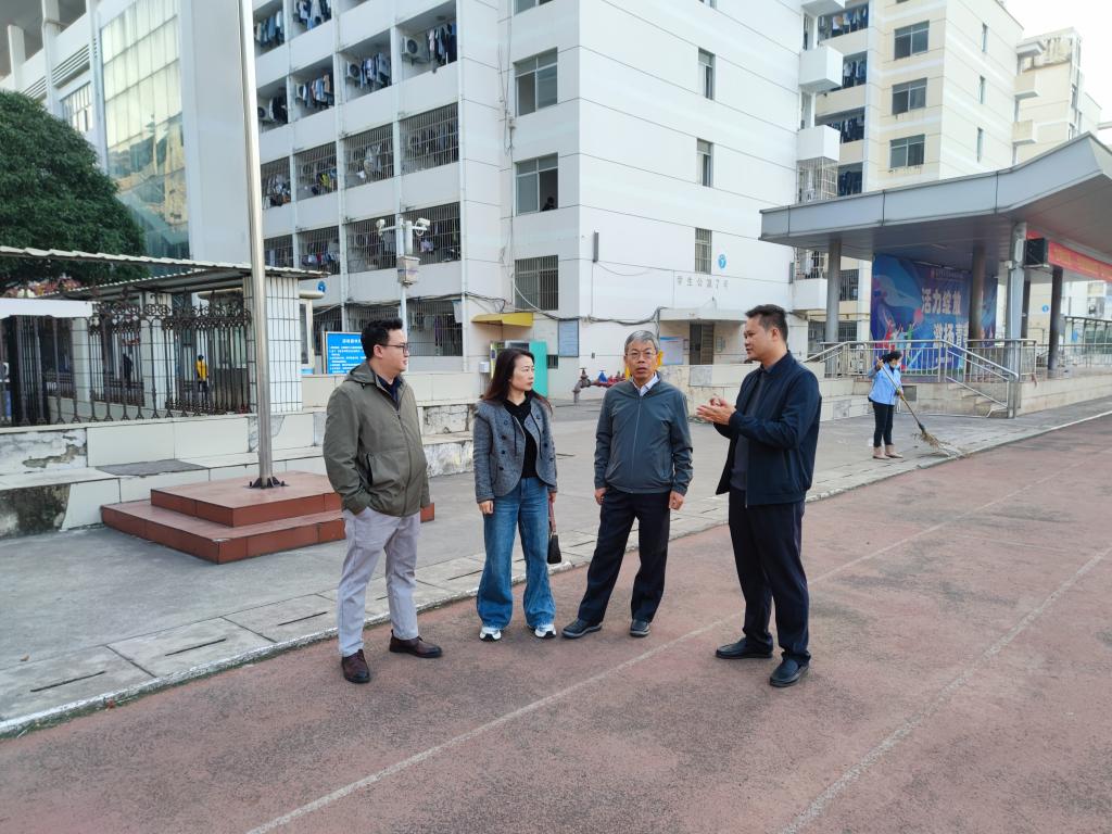 黎贞崇先后实地调研了安吉校区风雨操场、2栋教学楼、临街铺面等场所,对场所建筑结构、消防设施、电线电路、环境卫生、使用现状及经营状况等内容进行深入了解,现场听取相关负责人的工作汇报,就校园房屋安全管理等工作提出要求。