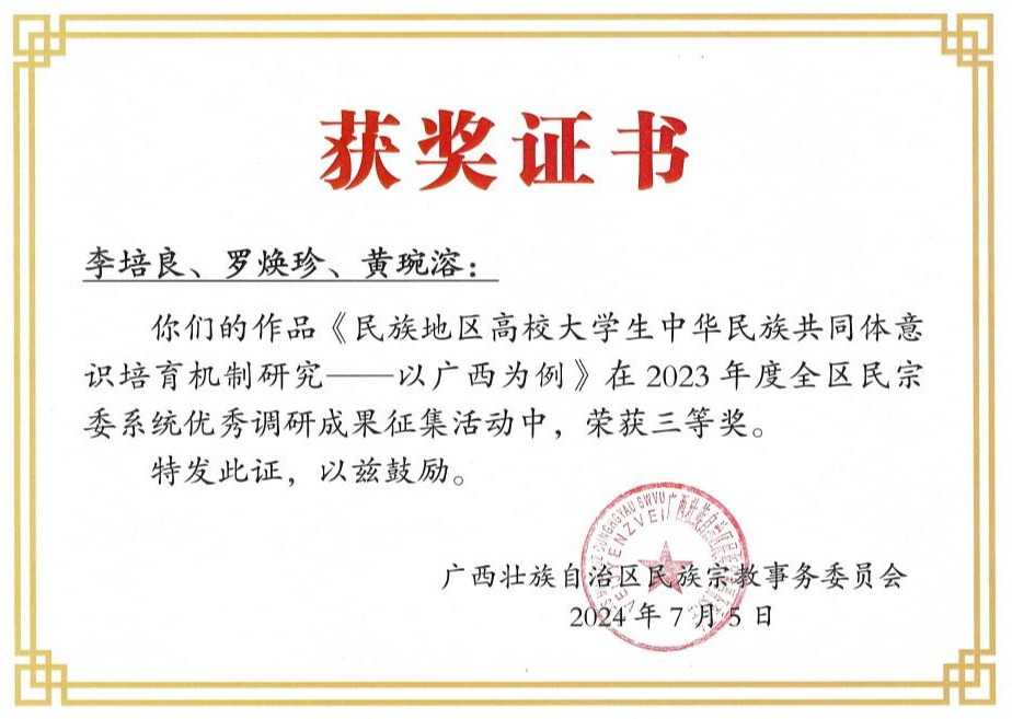 持续深化统战理论研究,推动实践探索,课题立项、理论研究、品牌立项成果丰硕,立项数为去年的3倍,1篇理论研究成果获评全区民宗委系统优秀调研成果三等奖。聚焦推动广西铸牢中华民族共同体意识示范区建设工作,坚持“走出去”和“请进来”,被确立为扶绥县“五个家园”示范点,在扶绥县建设铸牢中华民族共同体意识示范区工作推进会作典型发言。组织教师参加学校统战知识竞赛,参赛率为85.4%,英国上市公司365获“优秀组织奖”(全校六个),个人一等奖10名、二等奖23名、三等奖32名,占全校获奖教师的34%,远超其他学院。持续推动民族团结进步教育,开展少数民族传统体育运动会、广西“三月三”民族团结进步宣传月、“三月三”民族团结嘉年华、承办崇左市“红石榴”团结联谊活动暨驻崇高校珍珠球邀请赛等系列活动,经验做法获学习强国、广西卫视等主流平台及媒体报道。