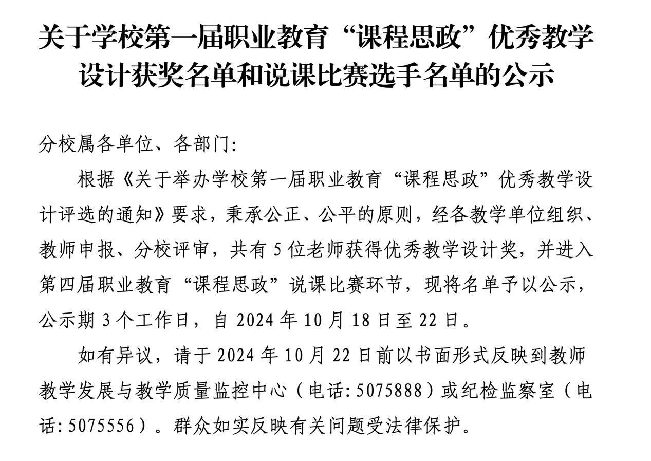 学院教师在学校“课程思政”比赛喜获佳绩