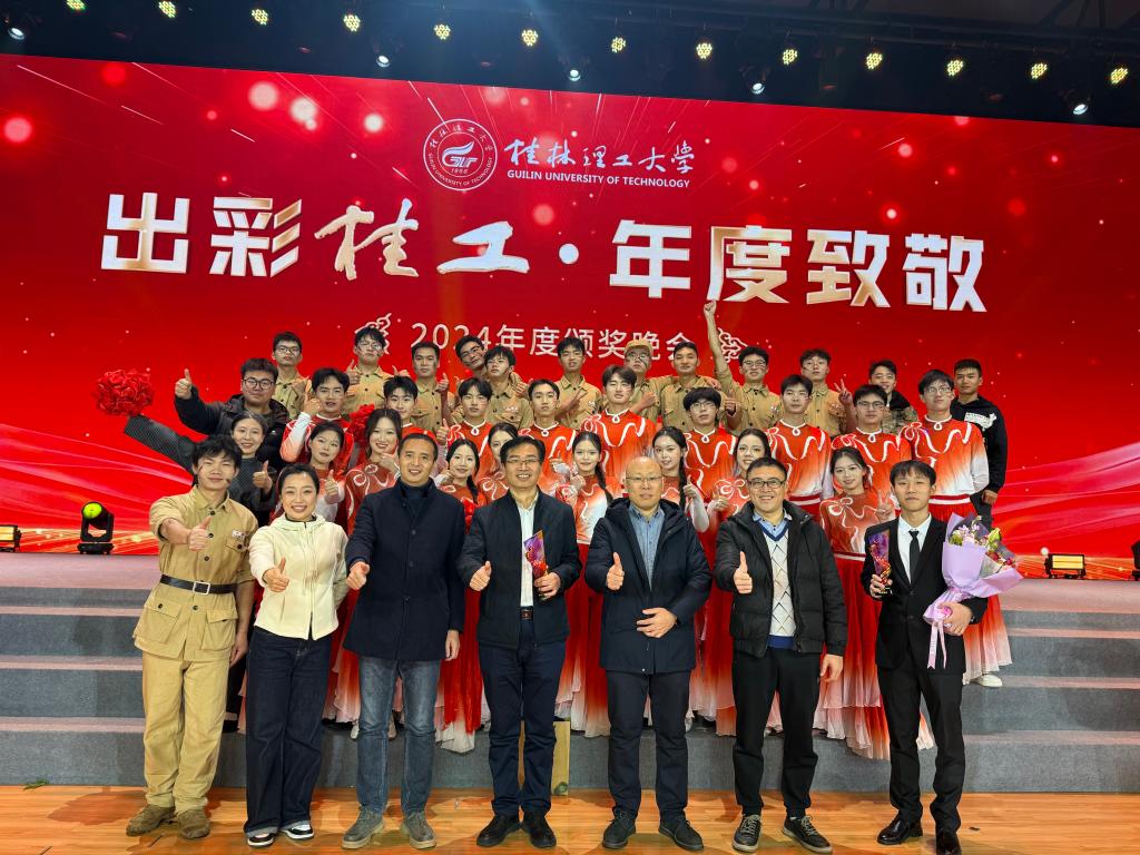12月27日晚,学校2024年度“出彩桂工・年度致敬”颁奖晚会在雁山校区新体育馆隆重举行,学校领导、各界嘉宾、师生代表等3000余人欢聚一堂,现场气氛热烈,共同为2024年学校取得的新成就喝彩。