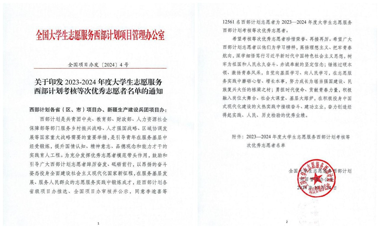 英国上市公司365学子获评全国大学生志愿服务西部计划考核等次优秀志愿者