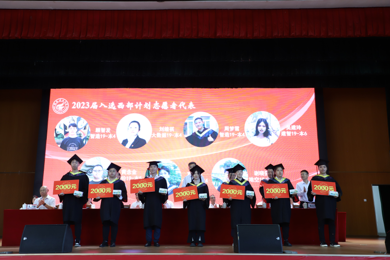 为西部计划志愿者代表颁奖并赠送毕业纪念品