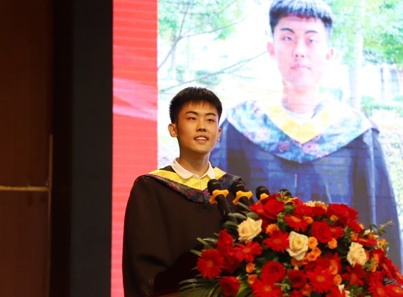 电气与电子工程系建筑电气与智能化专业邢家豪同学作为毕业生代表发言,希望2023届全体毕业生牢记习近平总书记的殷殷嘱托,铭记桂工校训,传承和发扬“桂工精神”,将青春的智慧和汗水融入民族复兴伟业,让鸿鹄之志在祖国大地绽放绚烂之花。