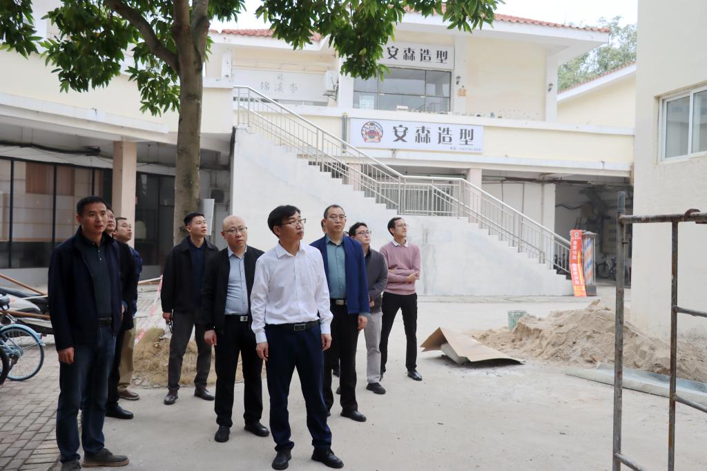 在旧商业街检查施工安全情况