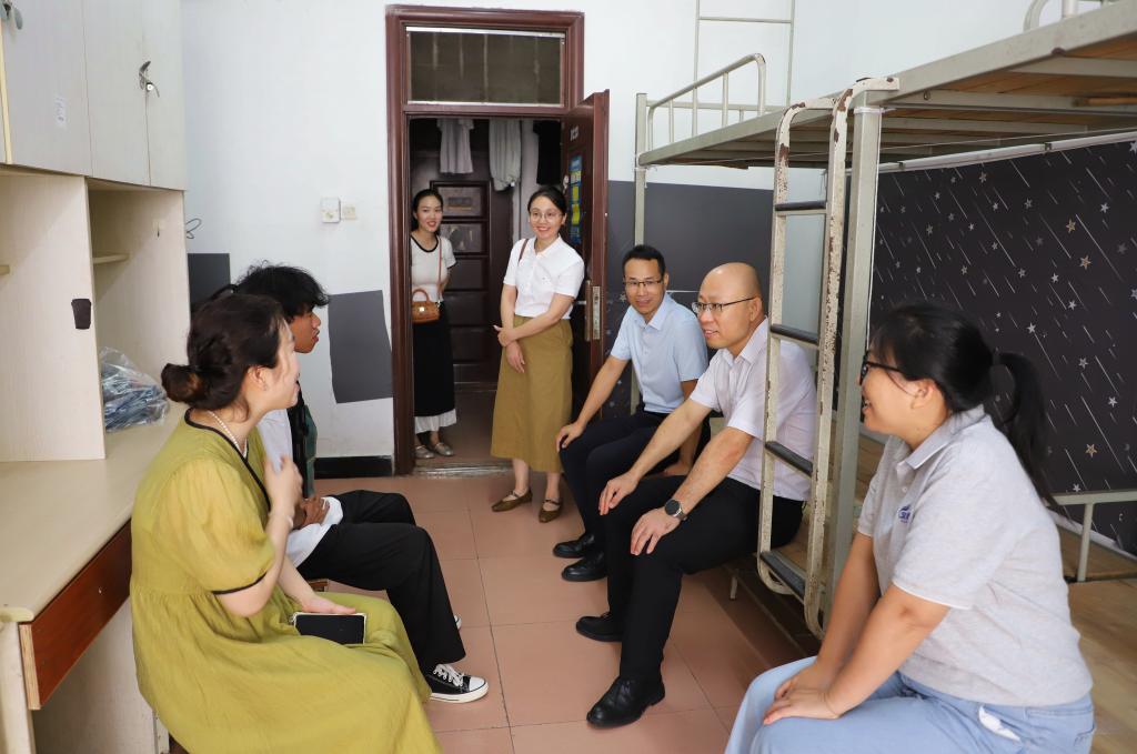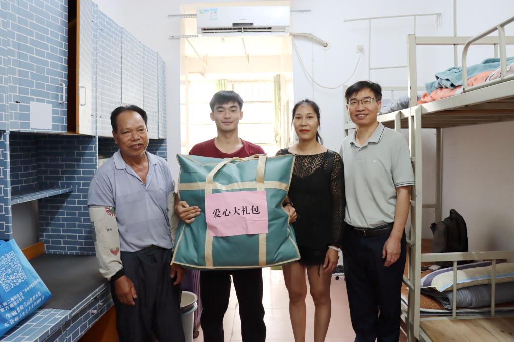 在学生宿舍,南宁分校领导与新生亲切交流,关心大家入学适应情况与生活需求,并为新生代表送上“爱心大礼包”,鼓励同学们积极融入新环境,合理规划大学生活,保持昂扬状态、勇于开拓创新,以奋斗姿态开启新征程。