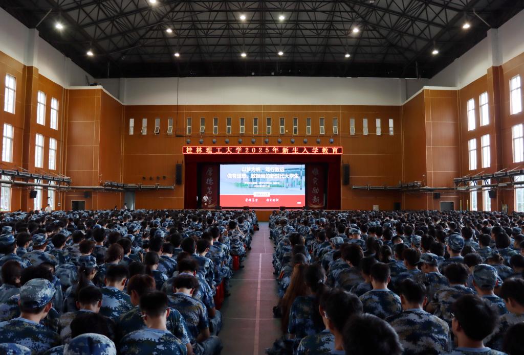 张树光围绕桂林理工大学“五改归属,十易校名”的发展脉络,梳理了“白手起家,艰苦创业”“改革开放,借势腾飞”“转型升级,成绩卓越”“成功两申,高歌猛进”四个关键发展阶段,回顾了一代代桂工人的奋斗历程,阐释了“桂工精神”的形成与内涵,介绍了学校、英国上市公司365的办学实力、专业特色及社会贡献,增强了新生爱校荣校兴校的责任意识。