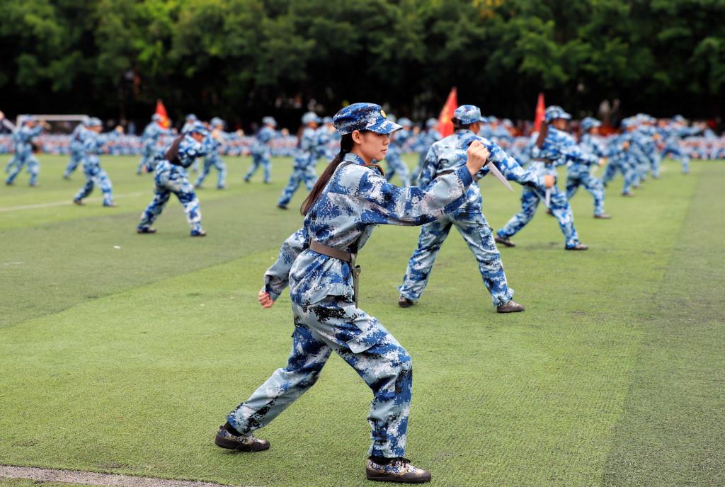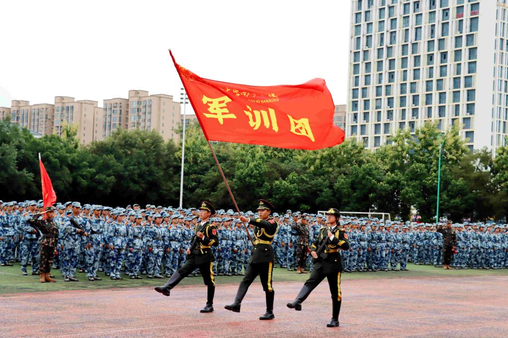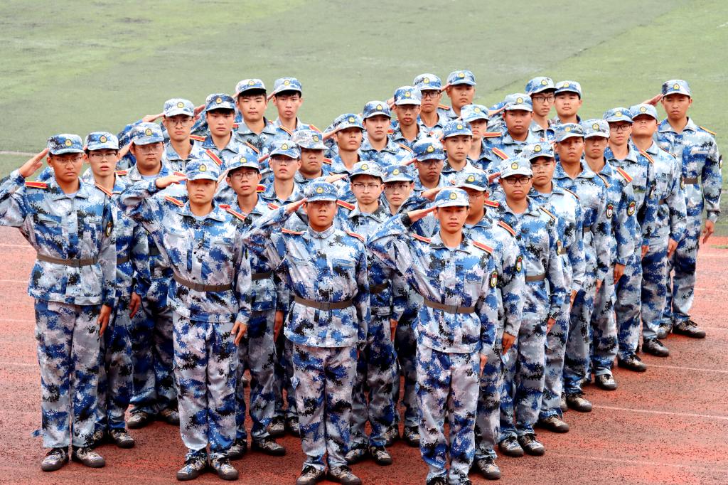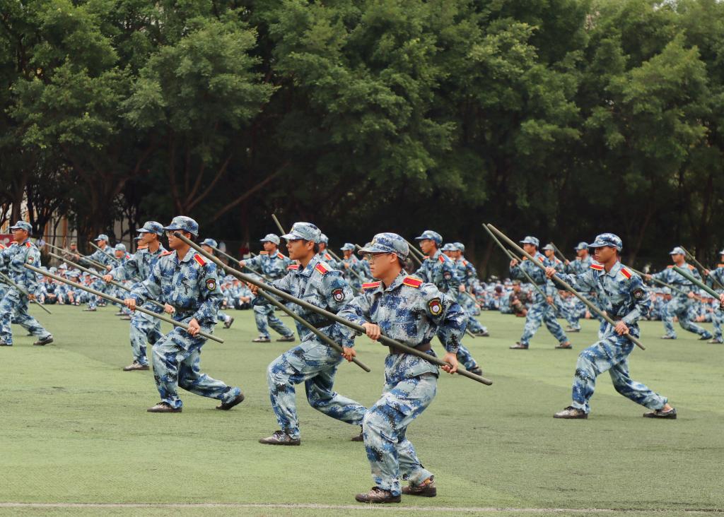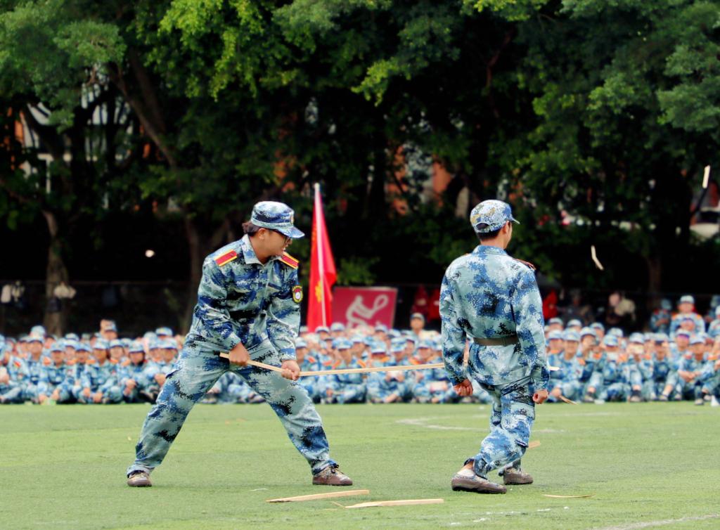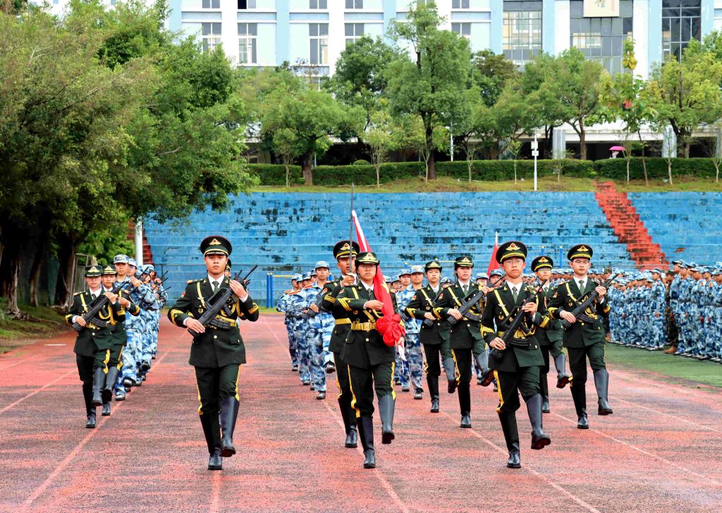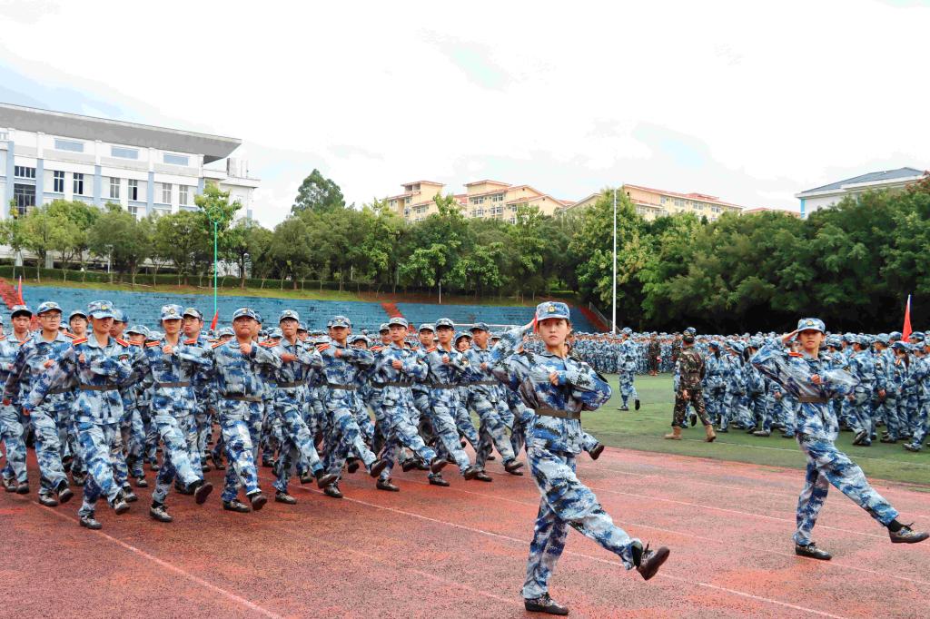 上午9时,在高亢嘹亮的国歌声中,学校党委副书记黎贞崇宣布军训科目展示暨总结大会开始。