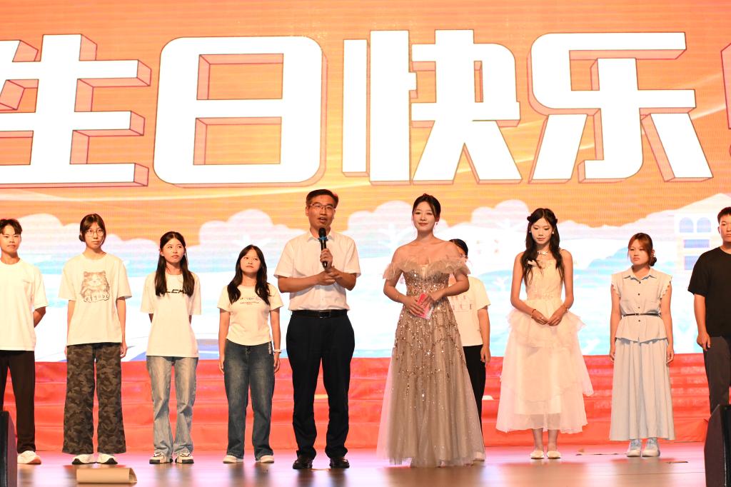互动环节中,张树光为晚会当天过生日的同学们送上生日祝福。