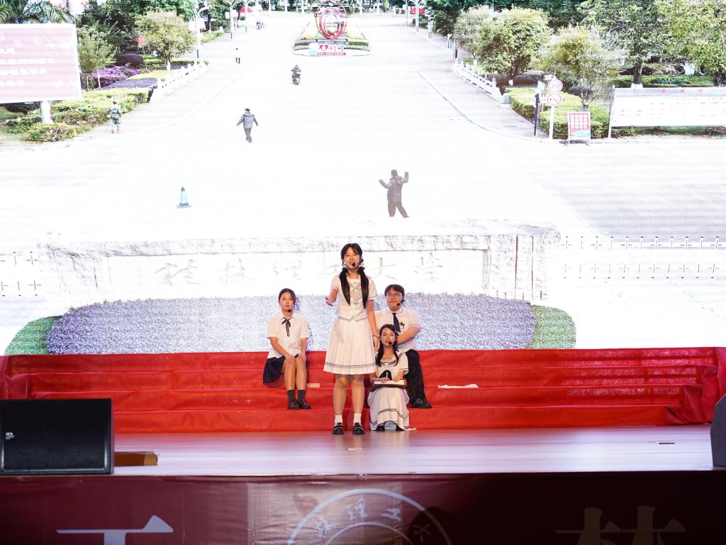 晚会以“回眸历史”与“青春砥砺”上下两篇为主线,通过舞蹈、朗诵、情景剧、音诗画、歌曲等多种艺术形式,生动展现了桂工学子传承红色基因、书写青春的使命担当。上篇以舞蹈《觉醒年代》开篇,演员们用铿锵有力的舞姿再现了近代民族觉醒的磅礴力量;情景朗诵《革命青年》和情景剧《为了新中国》深情讴歌了革命先辈的坚定信仰与牺牲精神;歌曲《天边》以悠扬旋律将观众带入对历史的深切追忆。下篇聚焦新时代青年的活力与担当军体拳表演展现了桂工学子们的飒爽英姿;音诗画《对话1985》通过跨越时空的对话,彰显青年与历史的共鸣;街舞《One Day》则以动感节奏诠释了青春激情,将晚会气氛推向高潮。