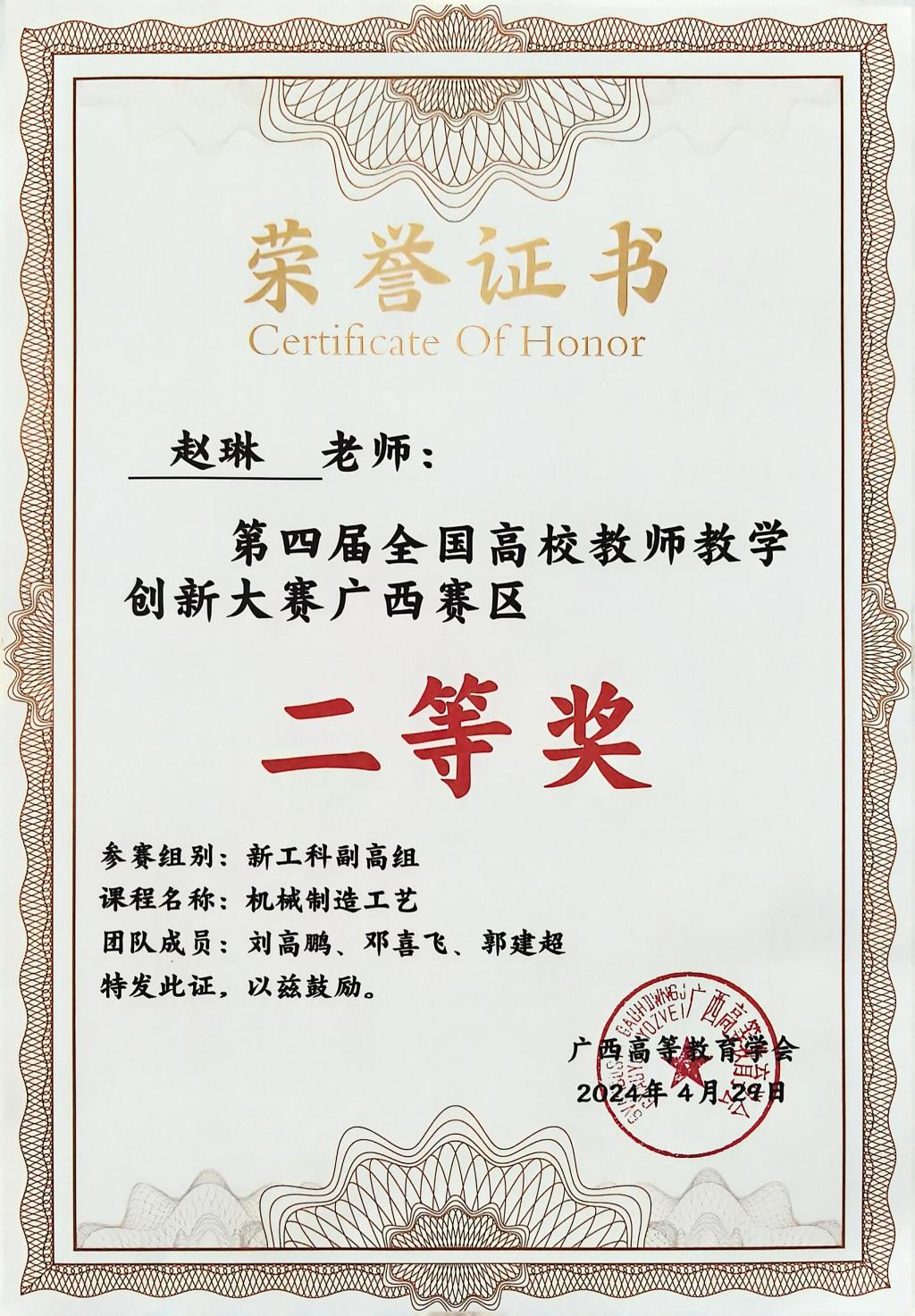 1名教师在全国高校教师教学创新大赛广西区赛中获二等奖