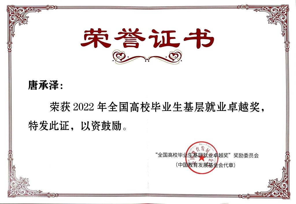 1名教师获评“全国高校毕业生基层就业卓越奖”