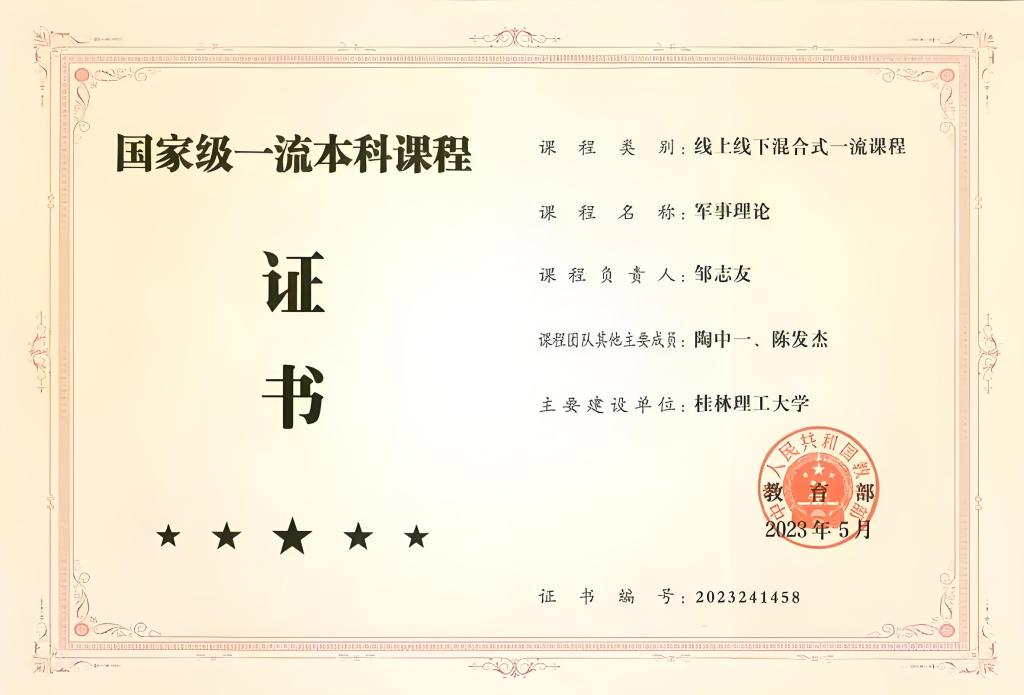 《军事理论》课程被认定为国家级一流课程