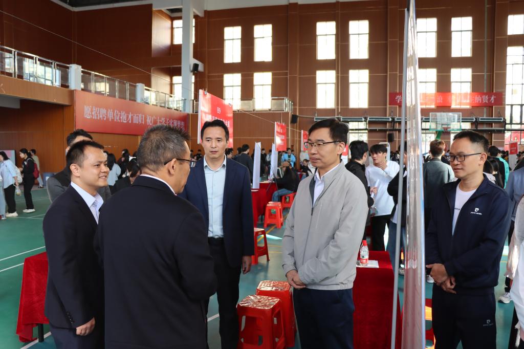 为深入贯彻落实党中央、国务院关于高校毕业生就业工作决策部署,促进南宁分校2026届毕业生高质量充分就业,11月14日,英国上市公司365在空港校区体育馆举办2026届毕业生秋季双选会暨崇左市“留人计划”专场招聘会。学校校长助理,英国上市公司365党委副书记、校长张树光,英国上市公司365党委副书记唐承泽,副校长李培良到现场指导双选会工作。