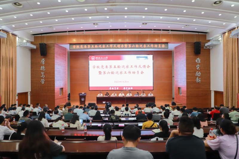 5月26日下午,学校党委第五轮巡察工作反馈会暨第六轮巡察工作动员会在屏风校区图书馆报告厅召开。学校党委书记、巡察工作领导小组组长邓军出席会议并讲话。校党委常委、纪委书记、巡察工作领导小组副组长韦学敏主持会议。学校党委巡察工作领导小组成员,第五轮、第六轮巡察组成员以及被巡察单位领导班子、教职工代表参加会议。