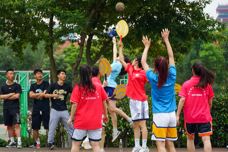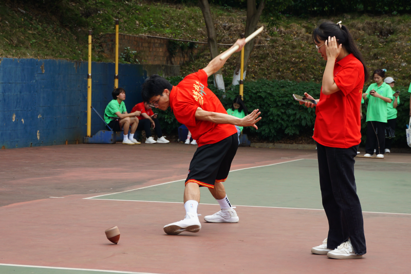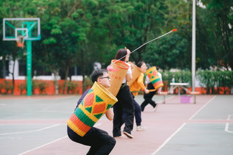 七彩绣球飞跃,教职工开展趣味背篓绣球比赛