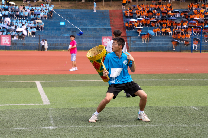 或抛或接,运动健儿身手敏捷,奋力用背篓接绣球