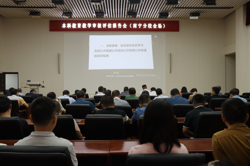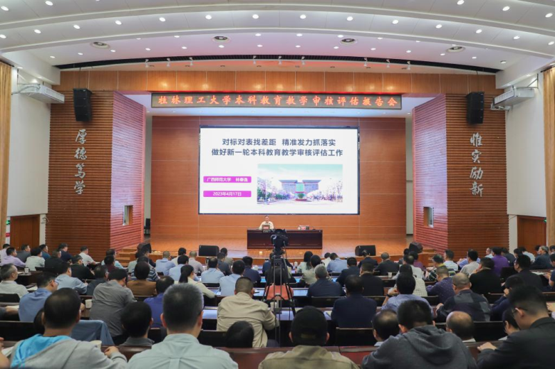 在学校上下全力做好迎接教育部对学校新一轮本科教育教学审核评估的关键时期,为进一步把握新一轮审核评估的精髓要义,更加全面、系统、精准地推进迎评促建工作,4月17日上午,学校在屏风校区图书馆报告厅举行本科教育教学审核评估报告会,邀请广西师范大学党委常委、副校长林春逸教授作专题辅导报告。校领导邓军、齐俊斌、吴志强、王玫、周国清、邓国彬、曾繁荣出席会议,党委常委唐壮东、叶昊、邱杰,党委委员、校长助理辛立章,校长助理潘旦光,全体中层干部,各学院教研室主任、实验室主任、教学秘书,学校评估办全体工作人员参加会议。报告会由学校党委常委、副校长王玫主持。