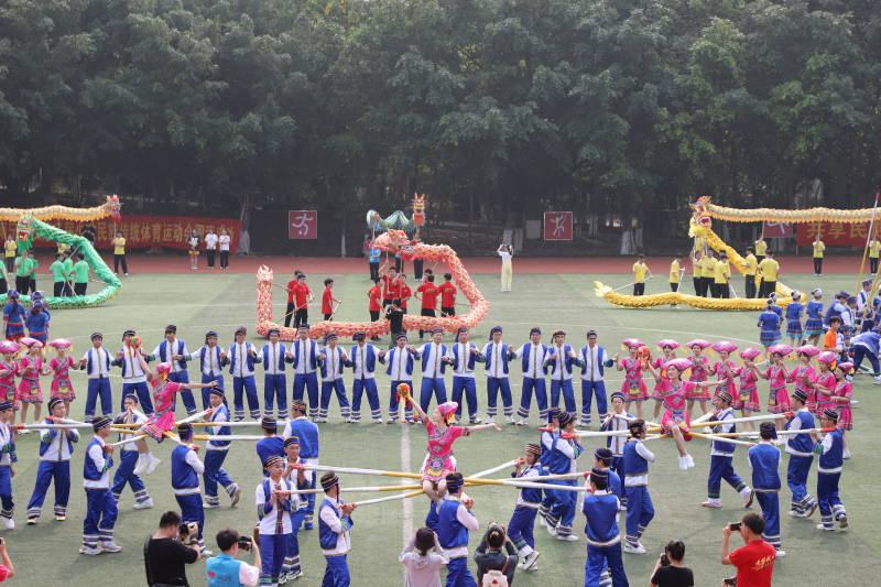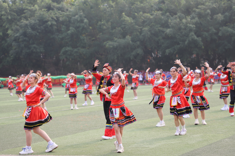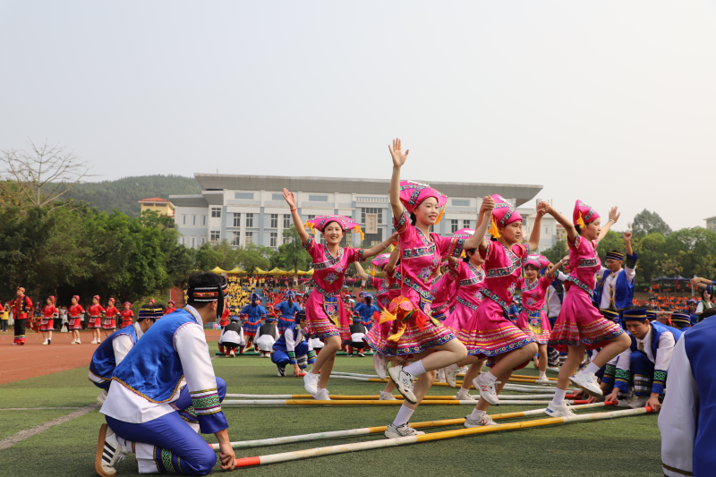 开幕式在热烈的掌声与欢呼声中谢幕。本届运动会,共有860多名师生报名参赛,设有双人板鞋竞速、三人板鞋竞速、三人板鞋接力、背篓绣球团体、高杆绣球团体、珍珠球团体、陀螺团体等14个赛项。