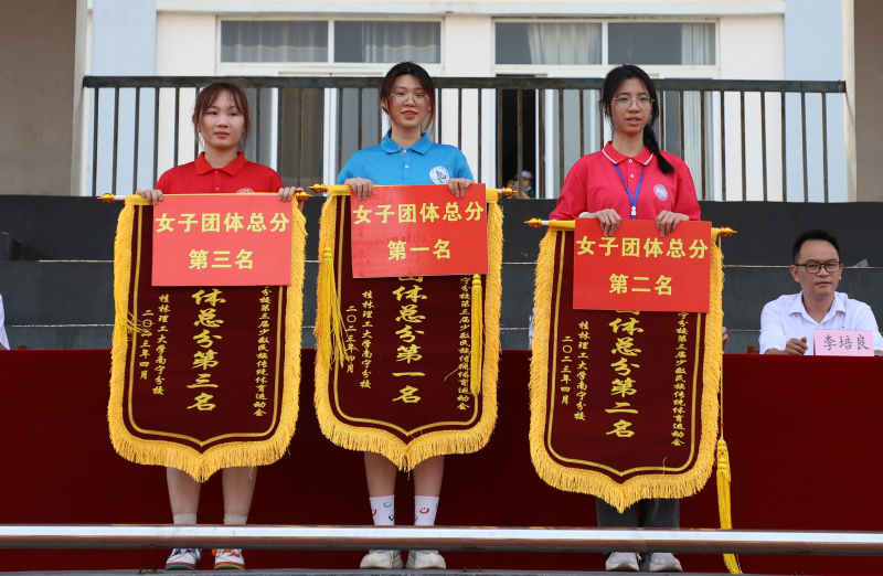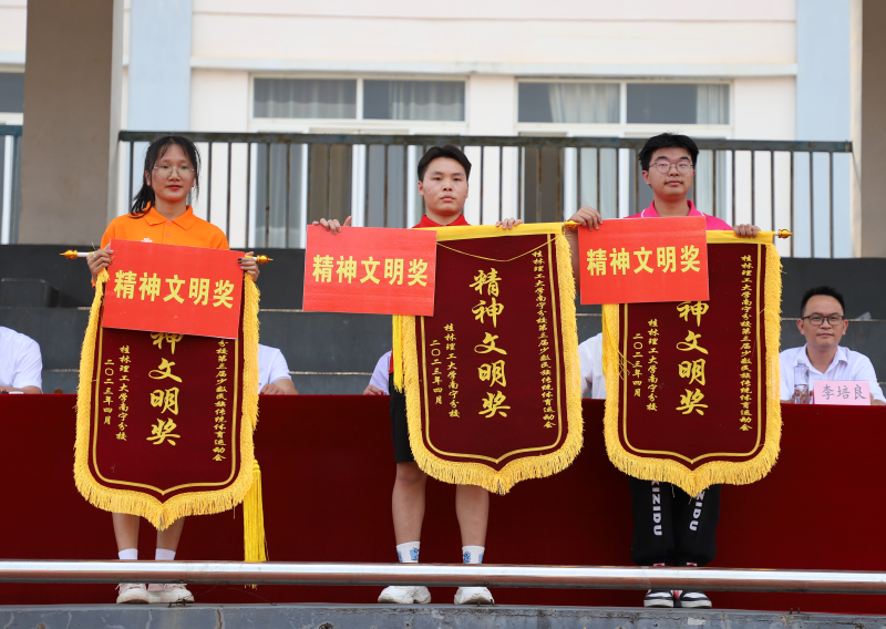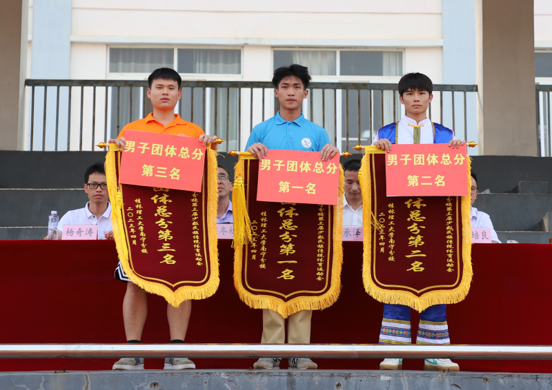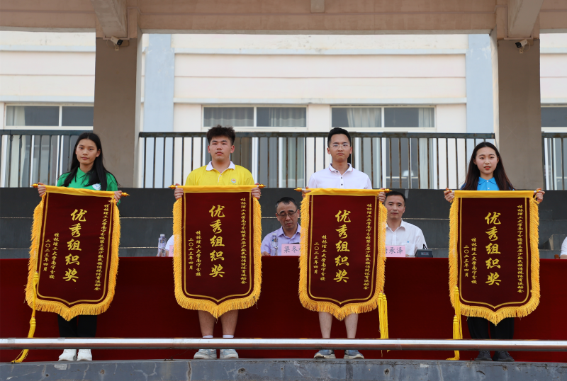 闭幕式上,运动会总裁判长黄远旺宣读了本届校运会比赛成绩。土木与测绘工程系荣获团体总分第一名;土木与测绘工程系、经济与管理系、机械与控制工程系获男子团体前三名;土木与测绘工程系、经济与管理系、冶金与资源管理系获女子团体前三名;土木与测绘工程系、电气与电子工程系、计算机应用系、广西鹏越生态科技有限公司获“优秀组织奖”;冶金与资源工程系、经济与管理系、机械与控制工程系获“精神文明奖”。主席台就坐领导为获奖集体颁奖。