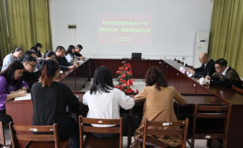 调研会上,学生工作部、团委主要负责人分别就部门基本情况、学团工作思路、队伍建设、本科教育教学审核评估、2023年重点工作目标落实情况及存在问题等方面进行了详细汇报。
