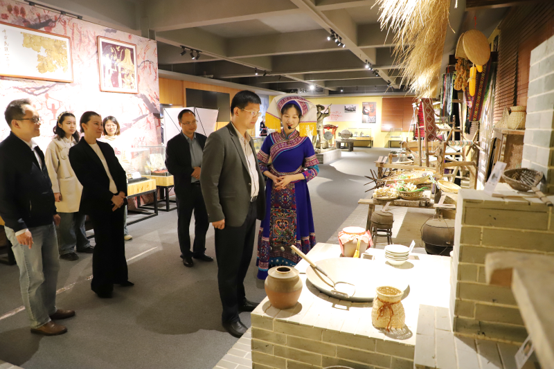 扶绥县委常委、统战部部长梁金海(右二)实地调研桂南民俗博物馆