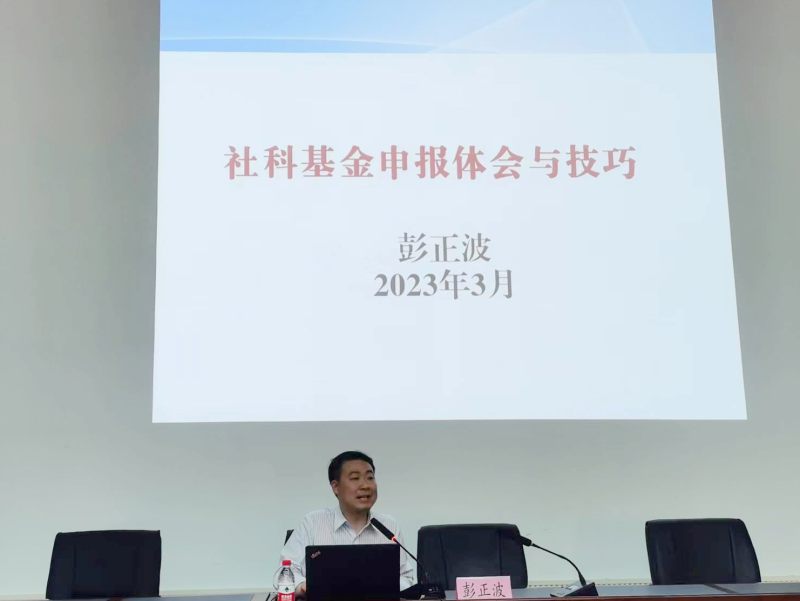 彭正波教授以《社科基金申报体会与技巧》为题,结合申报社科基金项目的成功案例,从国家社科基金项目申报的前期准备、选题技巧、论证方略等三个方面作经验分享。他指出,选题应依据稳定的研究方向,从多维研究视角出发立题,坚持问题导向,突出时代主题;论证过程注意言简意赅、合理评述,恰当提出课题研究的学术价值和应用价值;研究方法要具体、有针对性;申报书撰写要精心打磨,力求语言精准,内容具有地域特色,既呈现学术基础,又凸显研究前沿。
