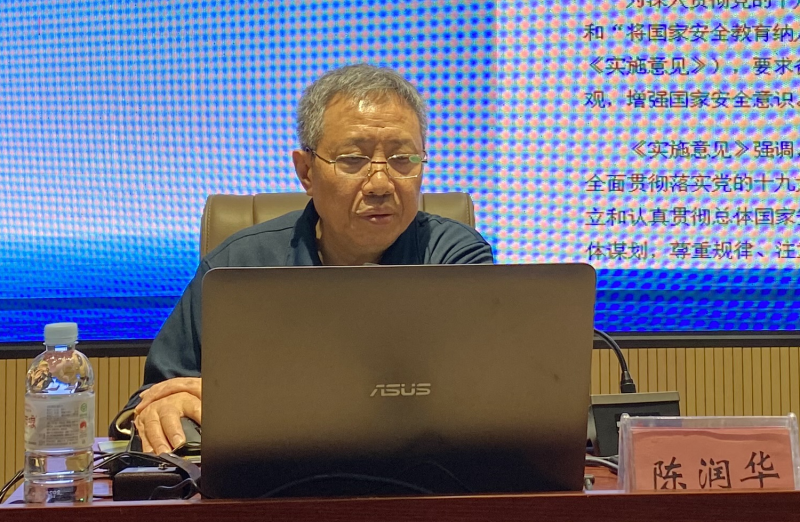 陈润华教授分别从习近平关于总体国家安全观重要论述提出的时代背景、思维体系等方面,详细阐述了党的国家安全思想的历史演进脉络,以及坚持学习贯彻习近平的国家战略安全观对中国国家安全事业建设与发展的现实意义。他强调,国家努力加速国防和军队现代化建设,提高保障国家周边安全的能力,大学生们要学会在目前复杂的世界格局中保持正确立场,增强国防观念,树立爱国热情和家国情怀,关心、支持、参与国防建设,时刻准备着为国防建设贡献出自己的力量。陈润华教授的讲座通俗易懂、生动详实,通过图文、例证等方式让师生们对总体国家安全观有了更全面的理解和认知。