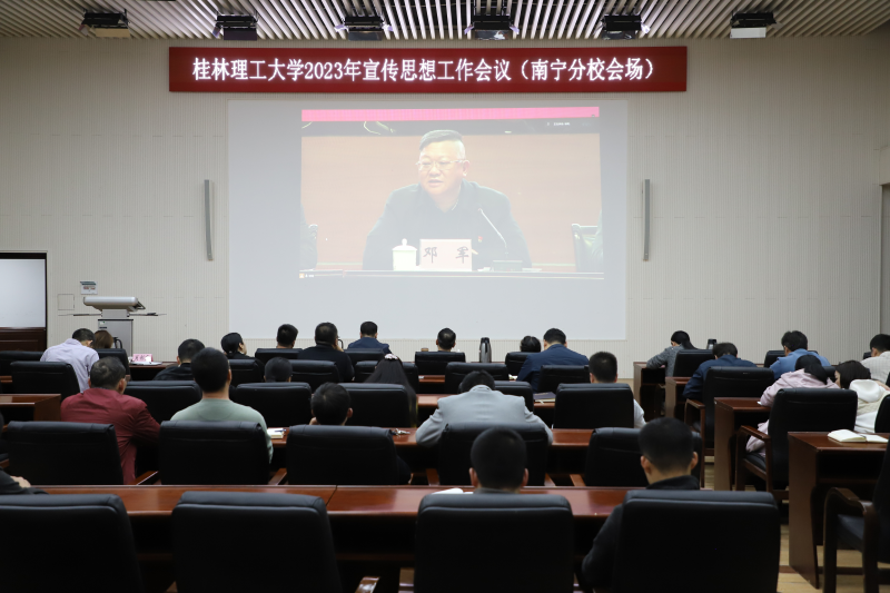3月16日下午,我校在屏风校区图书馆报告厅召开学校2023年宣传思想工作会议,以习近平新时代中国特色社会主义思想为指导,深入贯彻落实党的二十大和自治区第十二次党代会精神,总结工作,表彰先进,部署任务,进一步统一思想,凝聚力量,推动学校宣传思想工作再上新台阶、开创新局面。学校党委书记邓军,党委副书记、校长王敦球,党委副书记齐俊斌、吴志强,纪委书记韦学敏,党委常委唐壮东、叶昊、邱杰,校长助理罗盛锋出席会议。