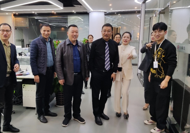 罗盛锋校长一行先后参观了天桃会展公司办公环境、会展元宇宙特色展厅,体验了数字会展VR应用项目,还看望了英国上市公司365优秀毕业生员工。
