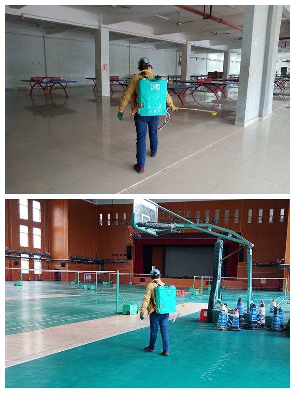 在体育馆进行清理消杀