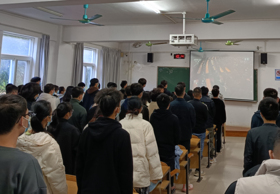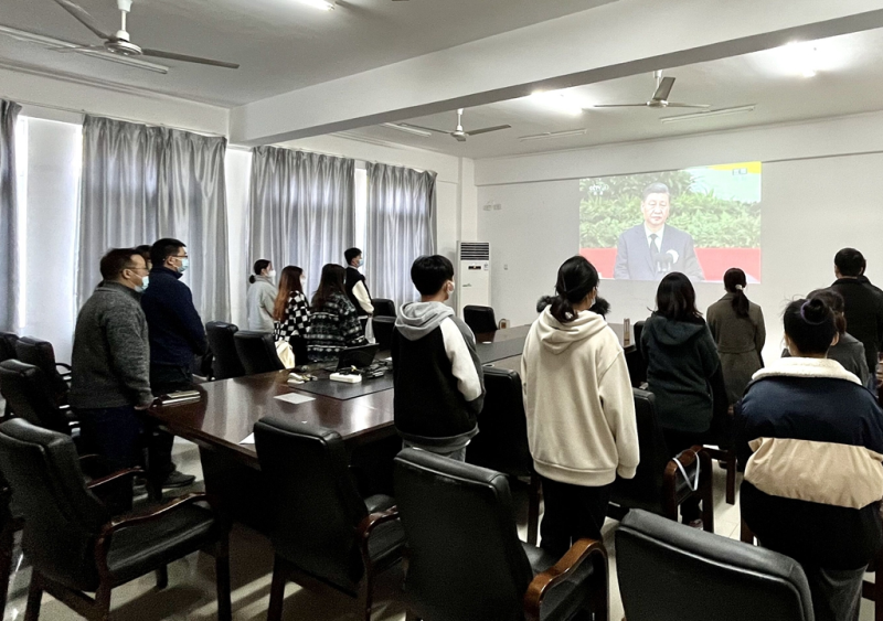 学校全体校领导、全体中层领导干部在屏风校区图书馆报告厅集中收看收听追悼大会(一)