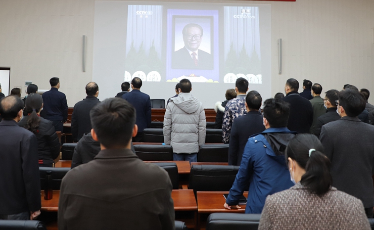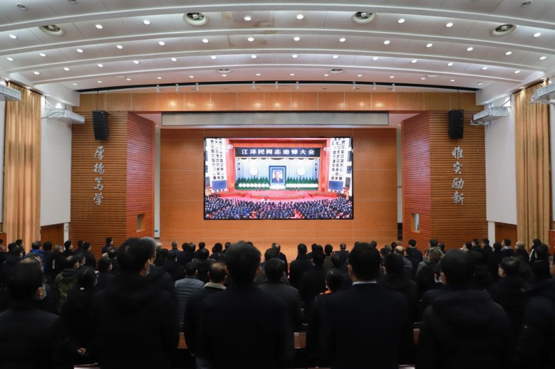 12月6日上午,党中央、全国人大常委会、国务院、全国政协、中央军委在北京人民大会堂隆重举行江泽民同志追悼大会,中共中央总书记、国家主席、中央军委主席习近平同志致悼词。学校全体校领导、全体中层领导干部在屏风校区图书馆报告厅集中收看收听追悼大会,沉痛哀悼、深切缅怀江泽民同志。