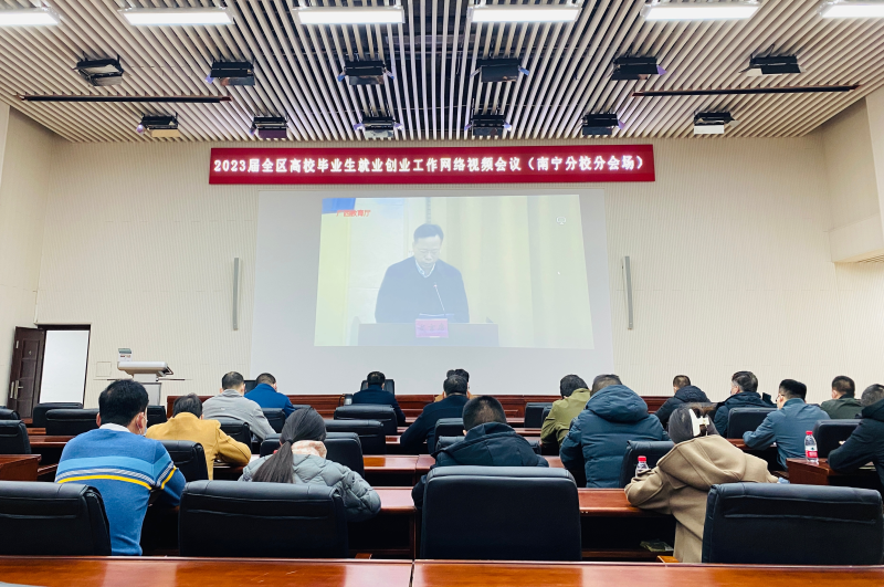 12月7日上午,自治区教育厅、人力资源社会保障厅召开2023届全区普通高校毕业生就业创业工作网络视频会议。自治区党委教育工委书记,自治区教育厅党组书记、厅长刘友谊,自治区人力资源和社会保障厅二级巡视员黄少坚出席会议并讲话,自治区教育厅党组成员、副厅长伍锦昌主持会议。学校在雁山校区A406会议室设立分会场。学校校长解庆林、党委副书记吴志强出席会议,相关部门、各二级学院负责人、就业工作辅导员参加会议。