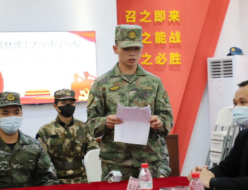 退役复学大学生代表舒正壮同学发表复学感言,表示返校后将继续保持部队的优良作风,认真学习科学文化知识,加强思想道德修养,努力在学生群体中起到表率作用。