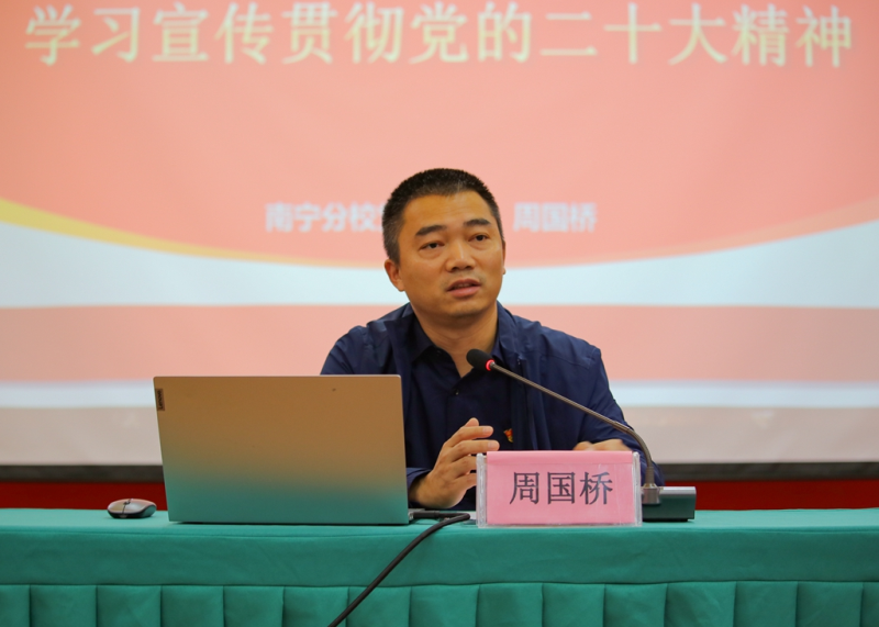 周国桥书记从深刻领会以中国式现代化全面推进中华民族伟大复兴及三个“务必”、“五个必由之路”等方面为青年团员学习党的二十大报告进行了全面阐释、系统宣讲、深刻解读。团员代表们结合周国桥书记的领学内容与党的二十大报告关键词分享了学习体会,纷纷表示要珍惜当下、奋发有为,以青年之声描绘青春画卷,展现新时代青年大学生的自觉担当。