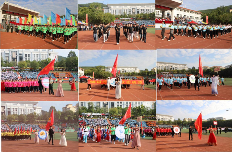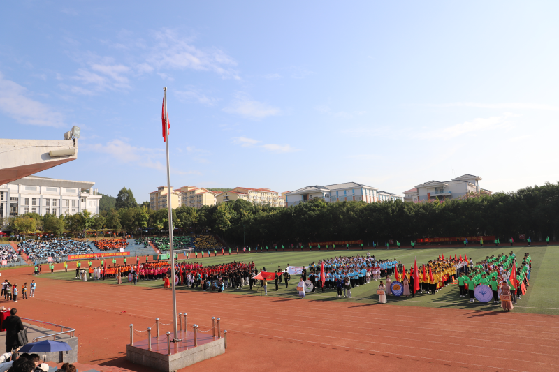 开幕式上,伴随着激昂的运动员进行曲,校国旗队队员们迈着铿锵有力的步伐护送校旗、校运会会旗进入会场,彩旗队和各系方队紧随其后,迈着整齐划一的步伐陆续入场。主席台前,各系结合专业特色和民族元素进行了独具创意的方队表演,为大家呈现了一场气势磅礴的视觉盛宴。