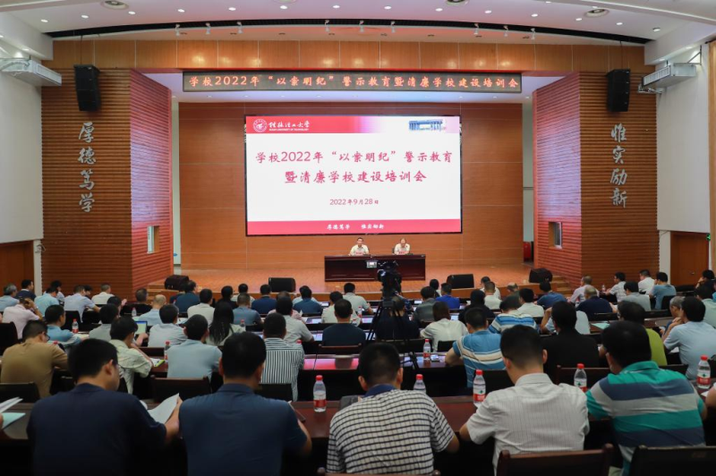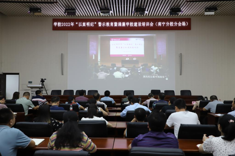 为贯彻落实新时代全面从严治党要求,深入推进清廉学校建设与反腐败工作,9月28日,学校在屏风校区图书馆报告厅召开了2022年“以案明纪”警示教育暨清廉学校建设培训会。学校党委常委、纪委书记韦学敏出席会议并作专题报告。学校党委常委、组织部部长唐壮东主持会议,党委常委、宣传部部长叶昊、统战部部长邱杰,党委委员、校长助理、教师工作部部长辛立章,全体中层干部、二级纪委书记、直属党支部纪检委员、专职纪检干部参加会议。