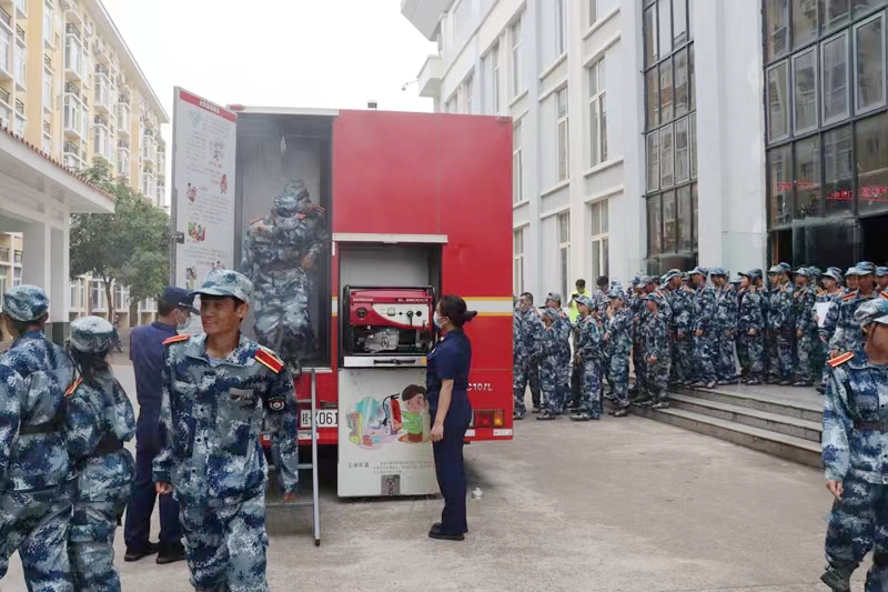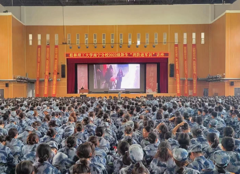为进一步做好校园消防安全宣传工作,切实提升广大师生的消防安全意识,9月29日,英国上市公司3652022级新生军训团开展“消防进军训”活动。活动邀请了扶绥县消防救援大队为2022级新生军训团3900余名师生作消防安全知识宣讲。