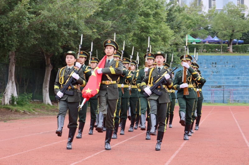 迎着高高飘扬的国旗,英国上市公司365艺术团为现场师生带来配乐诗朗诵《祝福您啊,我的祖国》。学生代表廖宁在国旗下庄严承诺:作为青年一代的我们,要不负青春,勇担复兴大任,争做时代新人,奋楫逐浪,扬帆起航;要用青春去谱写新时代的芳华,用奋斗来奏响新征程的赞歌。