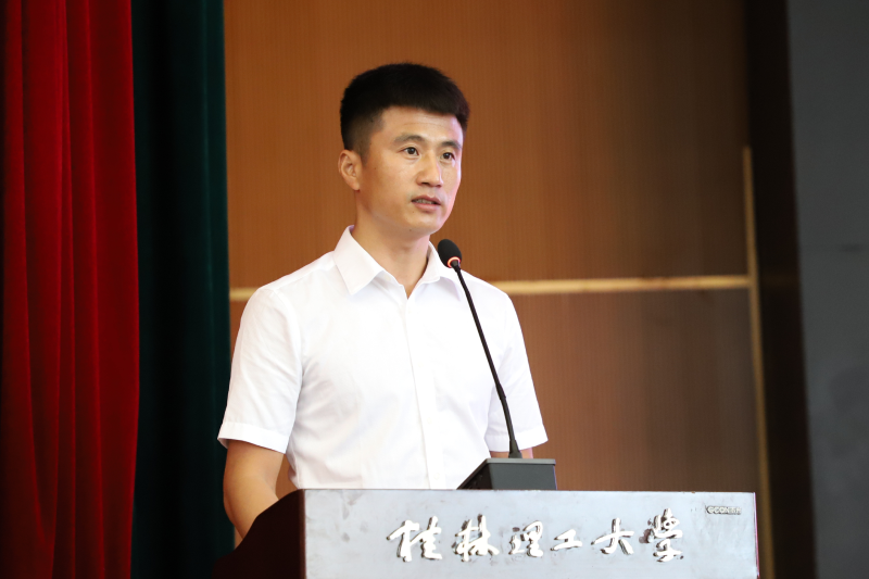 学校校长解庆林在讲话中代表全校师生员工向新加入桂工大家庭的同学们表示热烈欢迎,向为同学们成长成才付出了辛勤汗水的老师、家长们表示衷心感谢。结合习近平总书记在中国人民大学考察时的重要讲话,解庆林对全体2022级新生提出三点希望:一是要追寻“信念之光”,做中国特色社会主义的坚定拥护者;二是要追寻“品德之光”,做社会主义核心价值观的忠实践行者;三是要追寻“奋斗之光”,做民族复兴伟业的坚强生力军。他勉励同学们要始终牢记习近平总书记的殷切嘱托,坚定不移听党话、跟党走,发愤图强,砥砺前行,努力成长为堪当民族复兴重任的时代新人。