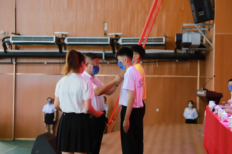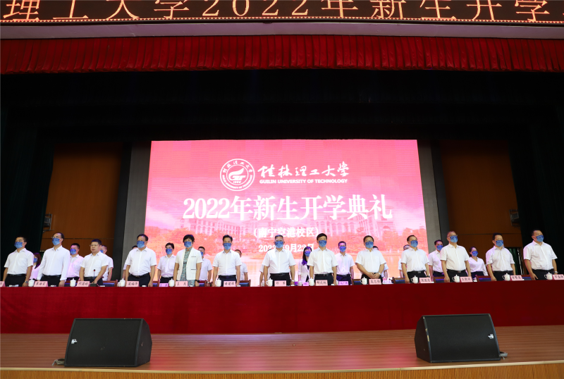 典礼上,学校党委书记邓军为新生代表佩戴校徽,标志着每位新生将以“桂工人”的身份开启崭新的大学生活。