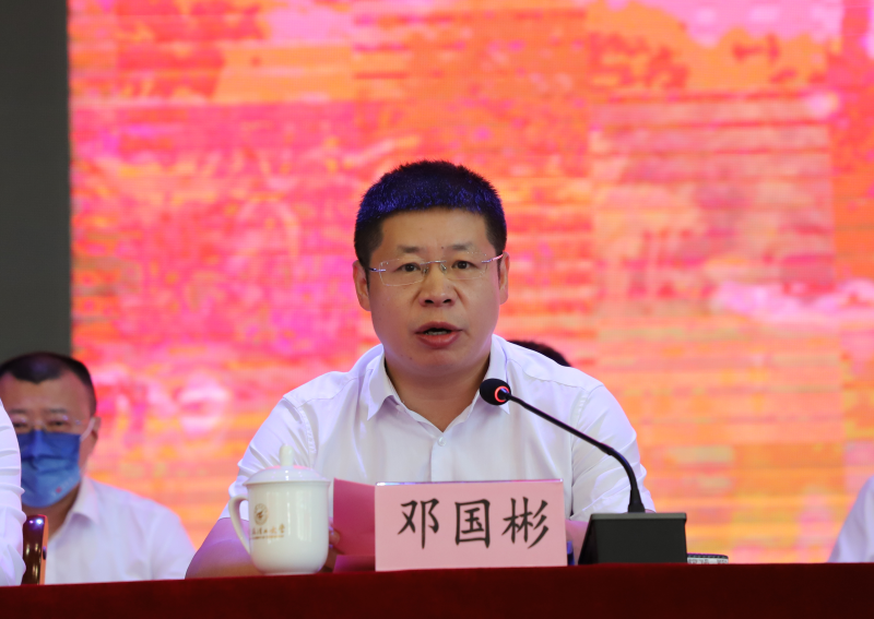扶绥县委书记黄建辉在讲话中介绍了扶绥县的地理位置、交通区位优势、文化资源优势、经济社会发展现状及规划,表示扶绥县将紧密围绕大学生求学、工作、生活需求,提供便利化、高质量、一条龙全方位服务,让同学们在扶绥的学习、生活期间有良好的治安、便捷的出行、丰富的商品、完善的设施、友善的人气、用心的服务和回家的感觉。